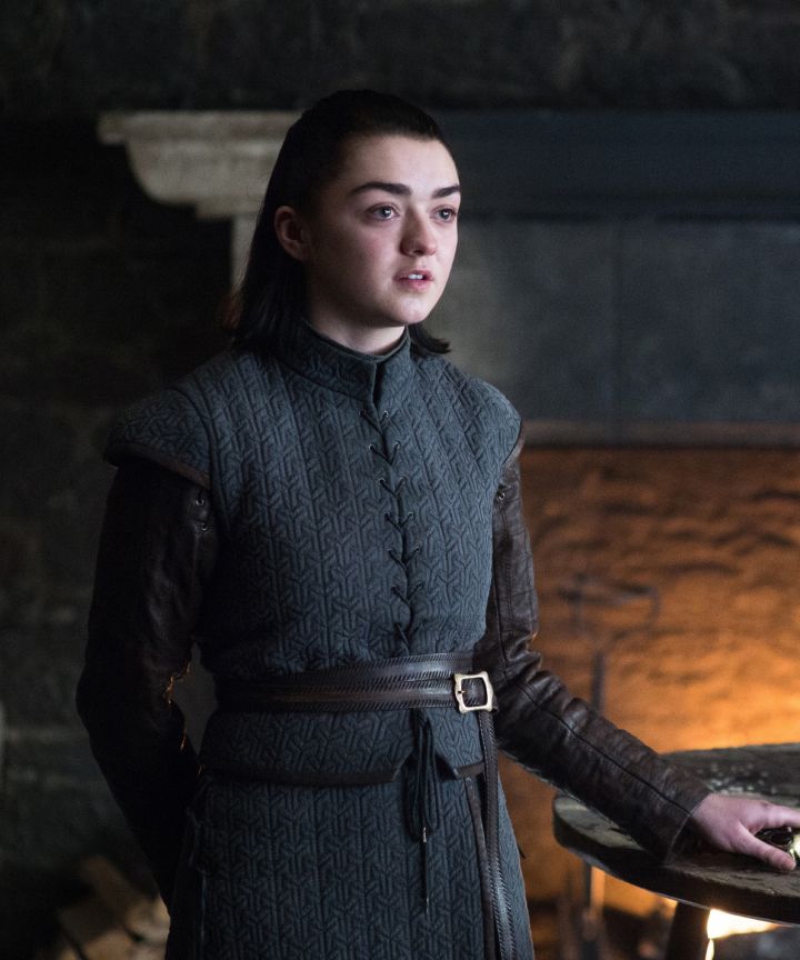 Introduced in 1996's A Game of Thrones, Arya is the younger daughter and third child of Lord Eddard Stark and his wife Lady Catelyn Stark. She is tomboyish, headstrong, feisty, independent, disdains traditional female pursuits, and is often mistaken for a boy. She wields a smallsword named Needle, a gift from her half-brother, Jon Snow, and is trained in the Braavosi style of sword fighting by Syrio Forel.